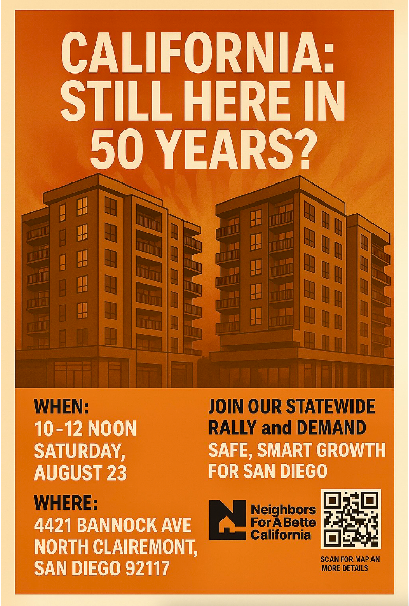 Neighbors for a Better California welcomes media covering the San Diego Rally against SB 79.